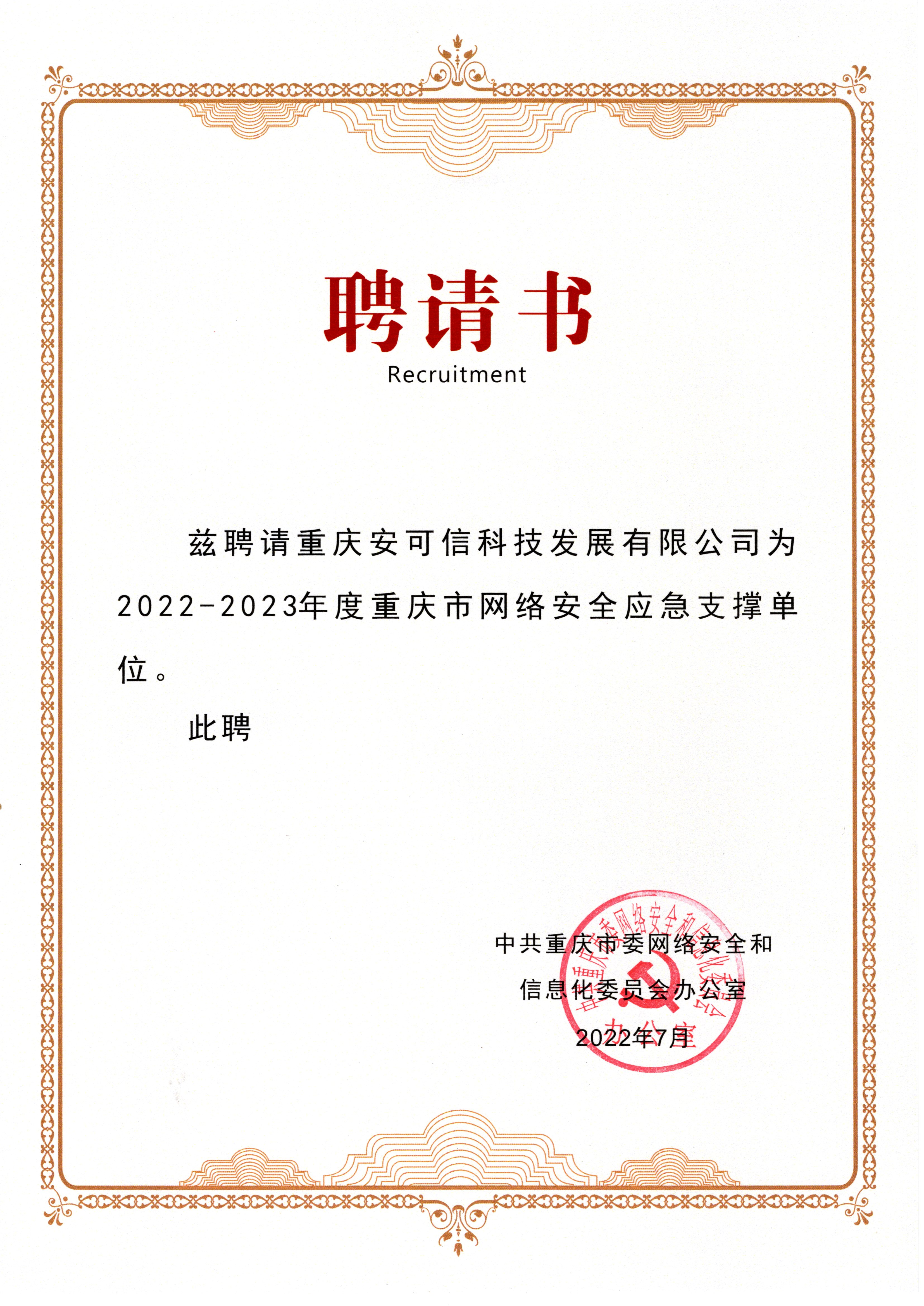 2021-2022年度重慶市網絡安全優(yōu)質服務企業(yè)