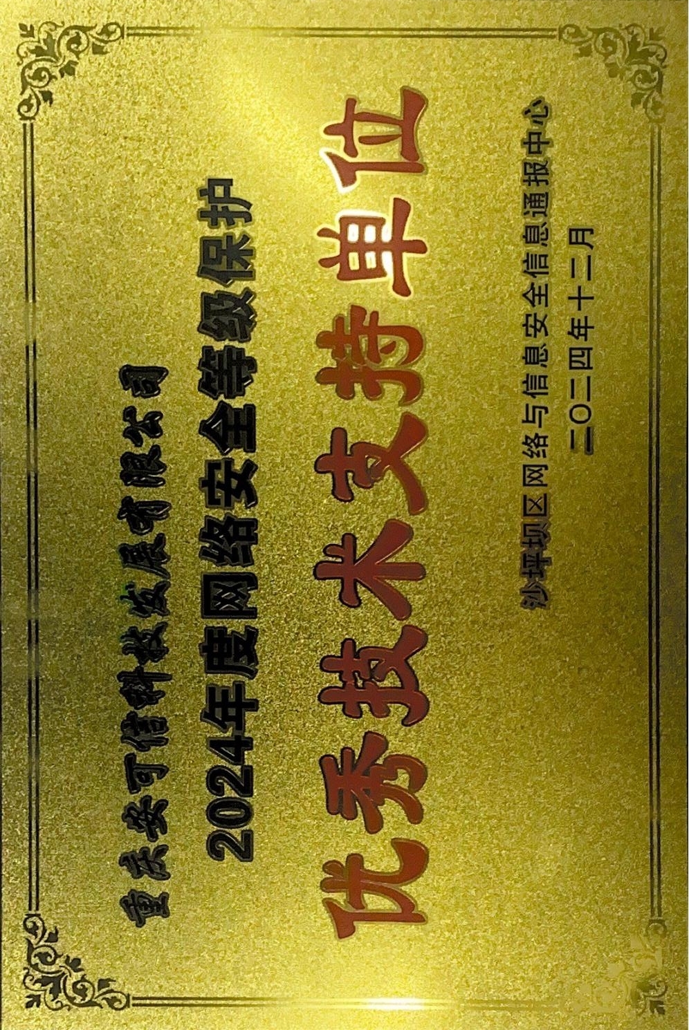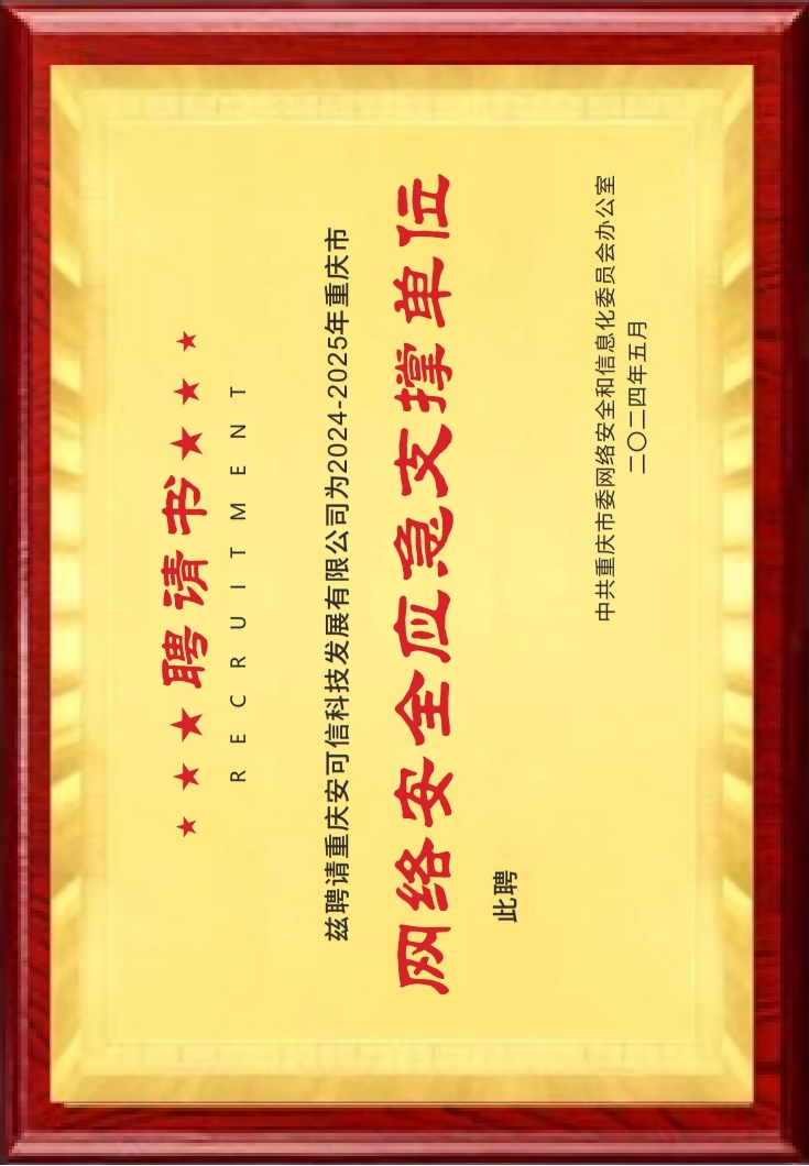 沙坪壩區(qū)網絡與信息安全信息通報中心2024年度網絡安全等級保護優(yōu)秀技術支持單位