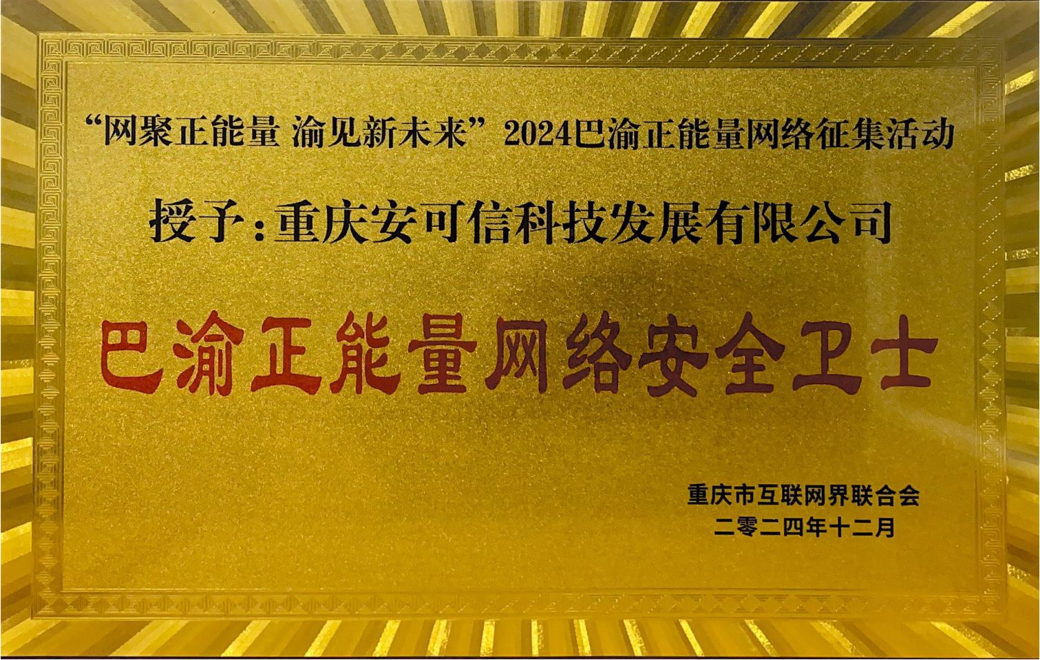 重慶市互聯(lián)網界聯(lián)合會2024年巴渝正能量網絡安全衛(wèi)士